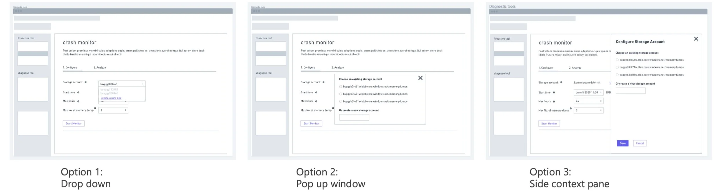 Design Question 3: How to let users assign storage account or create a new one?